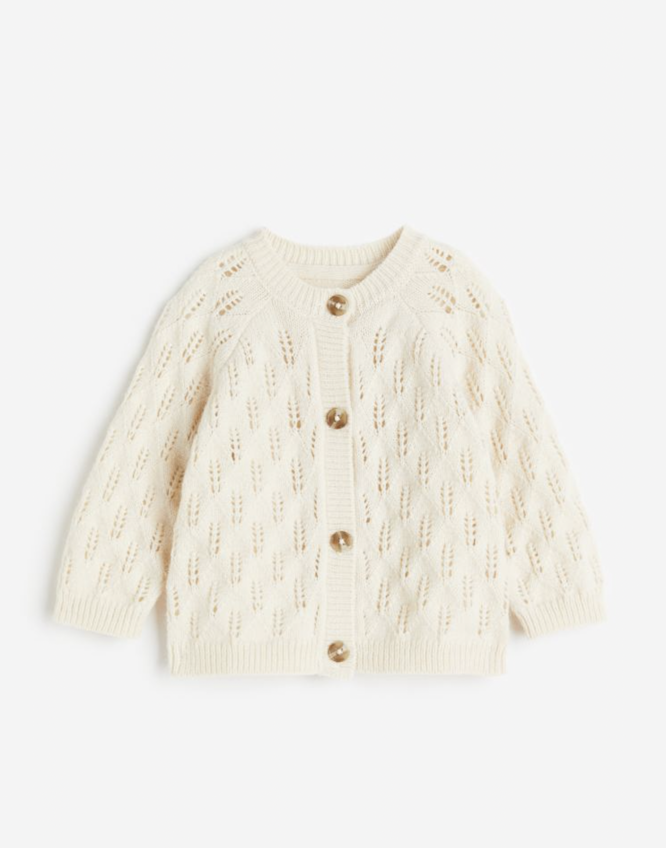 Pointelle-knit Cardigan, Natural White