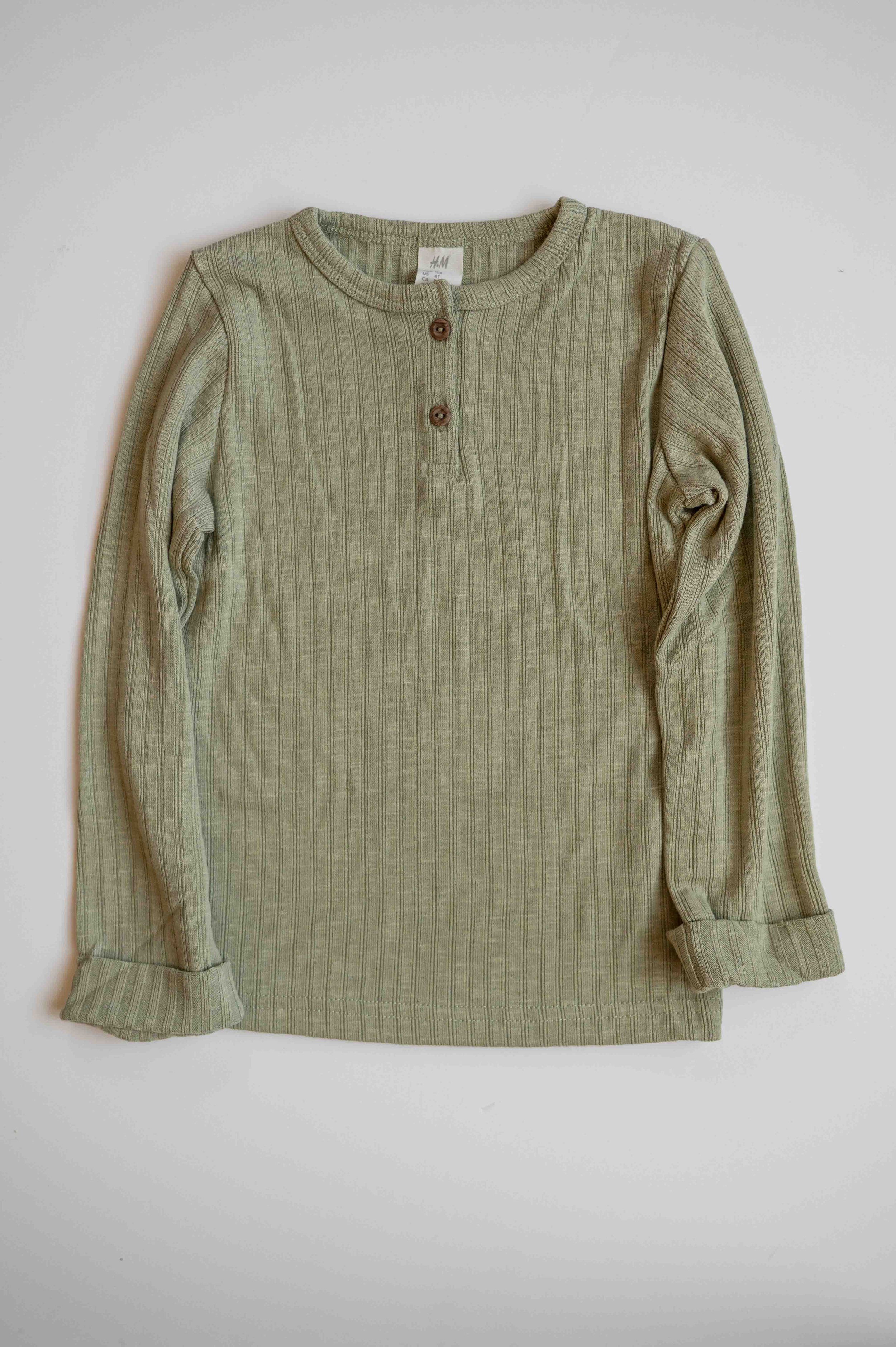 Ribbed Henley, Light Green Khaki